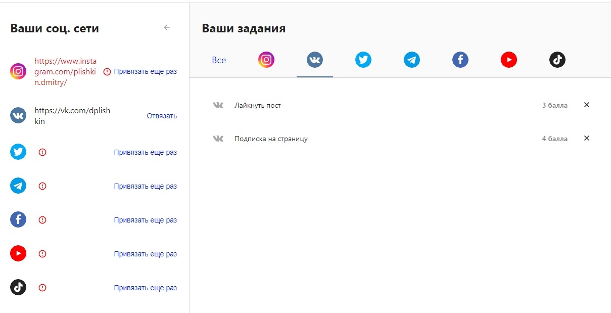 Выполнить задание так же просто, как и привязать соцсеть, проверка выполнения тоже автоматическая.