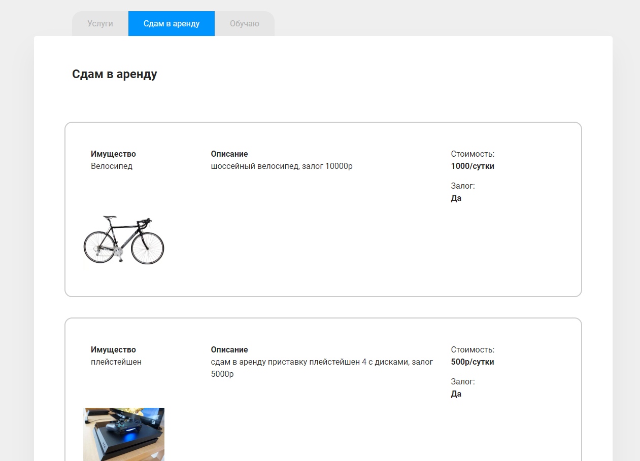 Объявления пользователя об услугах